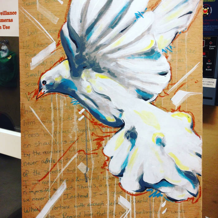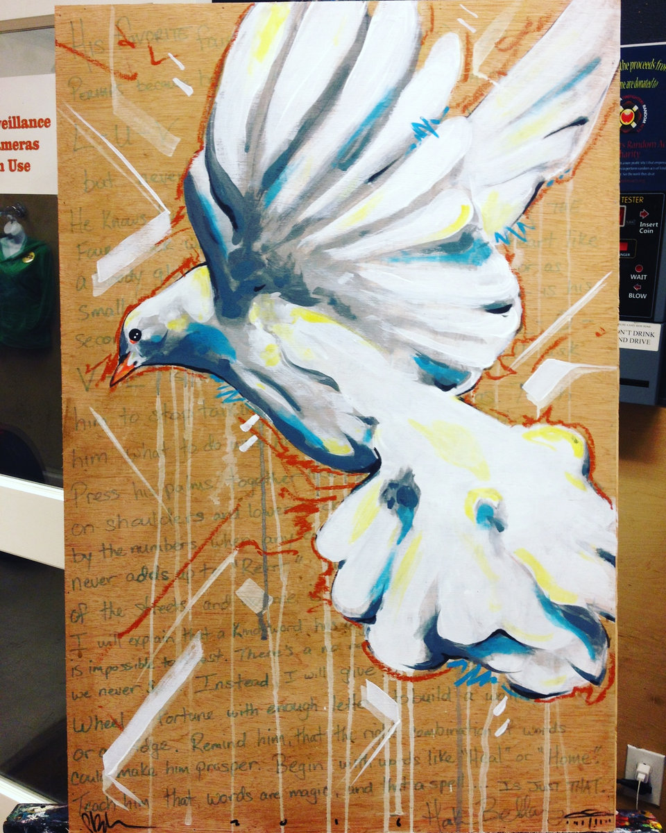 This poem "Four Letter Magic" was commissioned for the Healing Words 2016 fundraiser for New Day Youth & Family Services (an Immastar Production). The poem was originally written on the theme "healing words" for the youth who live at the New Day Youth Shelter. The poem was then written on a wooden canvas to be painted by a local visual artist. My poem was paired with my comrade Patrick "Cloudface" Burnham (FOF). The resultant work of art sold for $460.00, all the proceeds went to New Day.